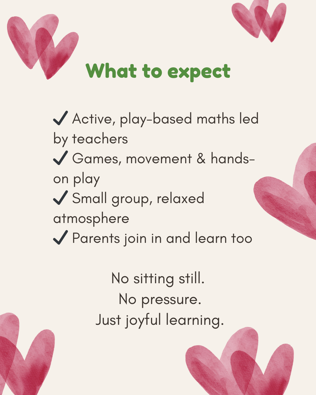 Each Jump Start Maths class follows a clear structure while allowing children the freedom to explore and engage in ways that suit them.